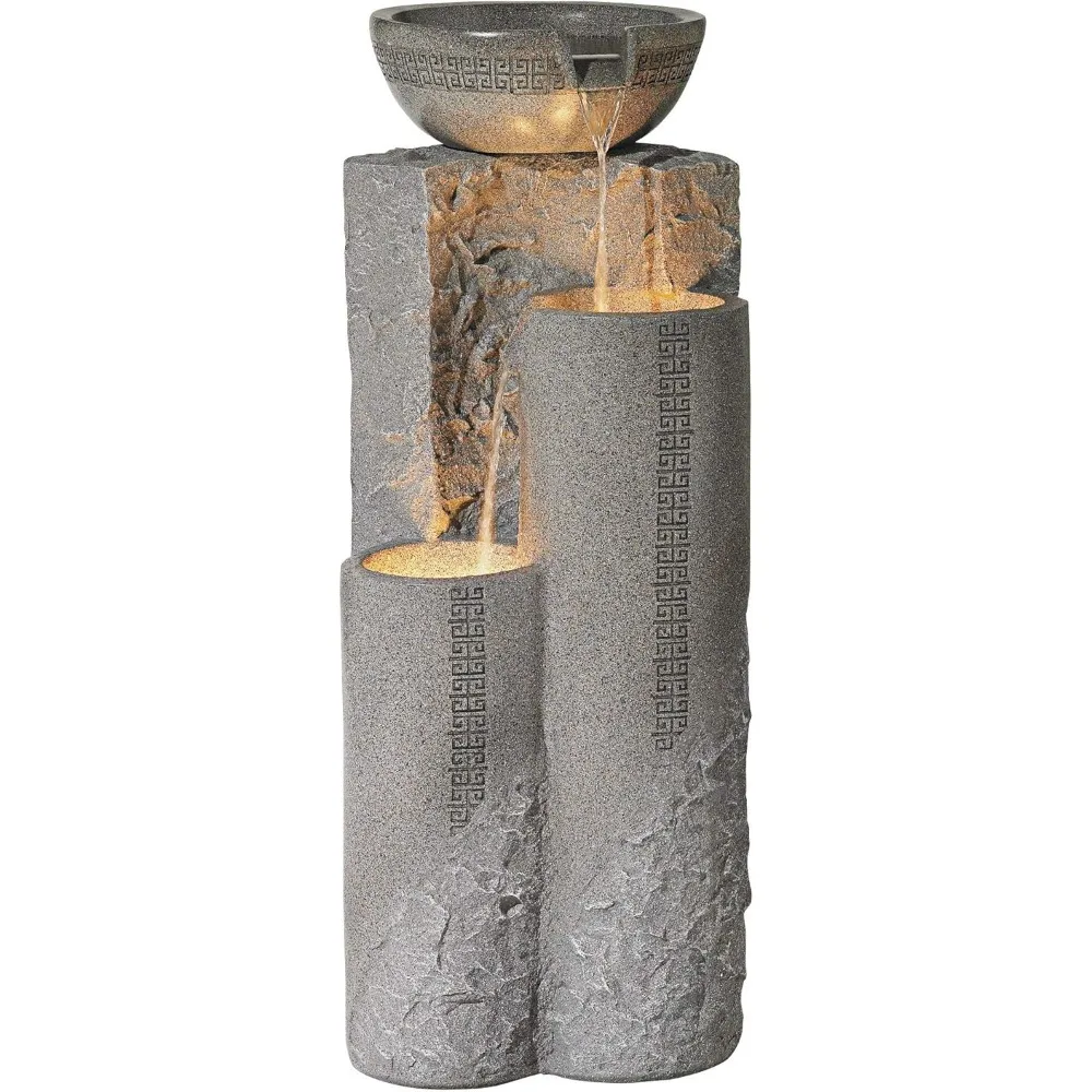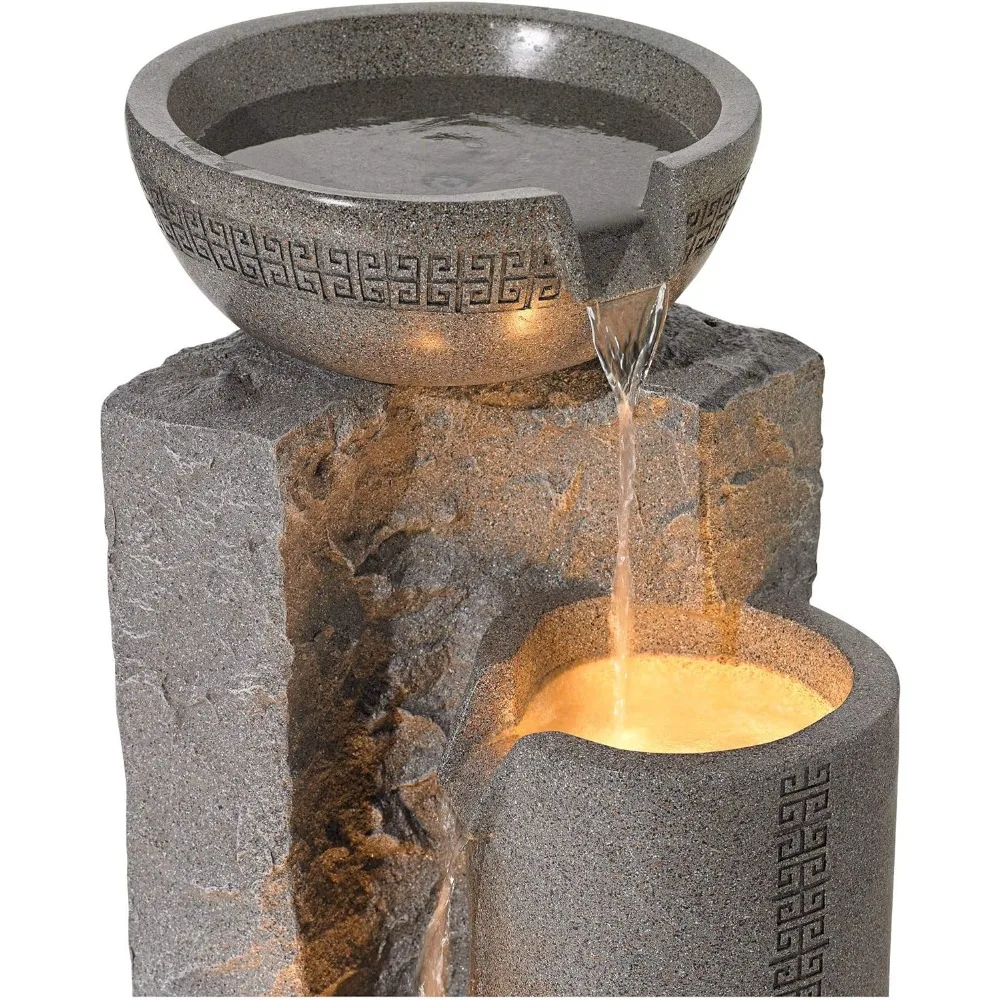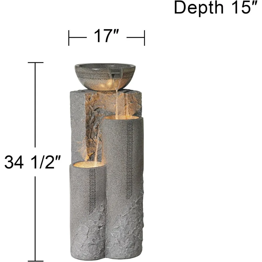 Bowl and Pillar 34 1/2 High Large Modern Zen Outdoor Decor Faux Stone Floor Fountain with Light LED Standing Waterfall Tiered