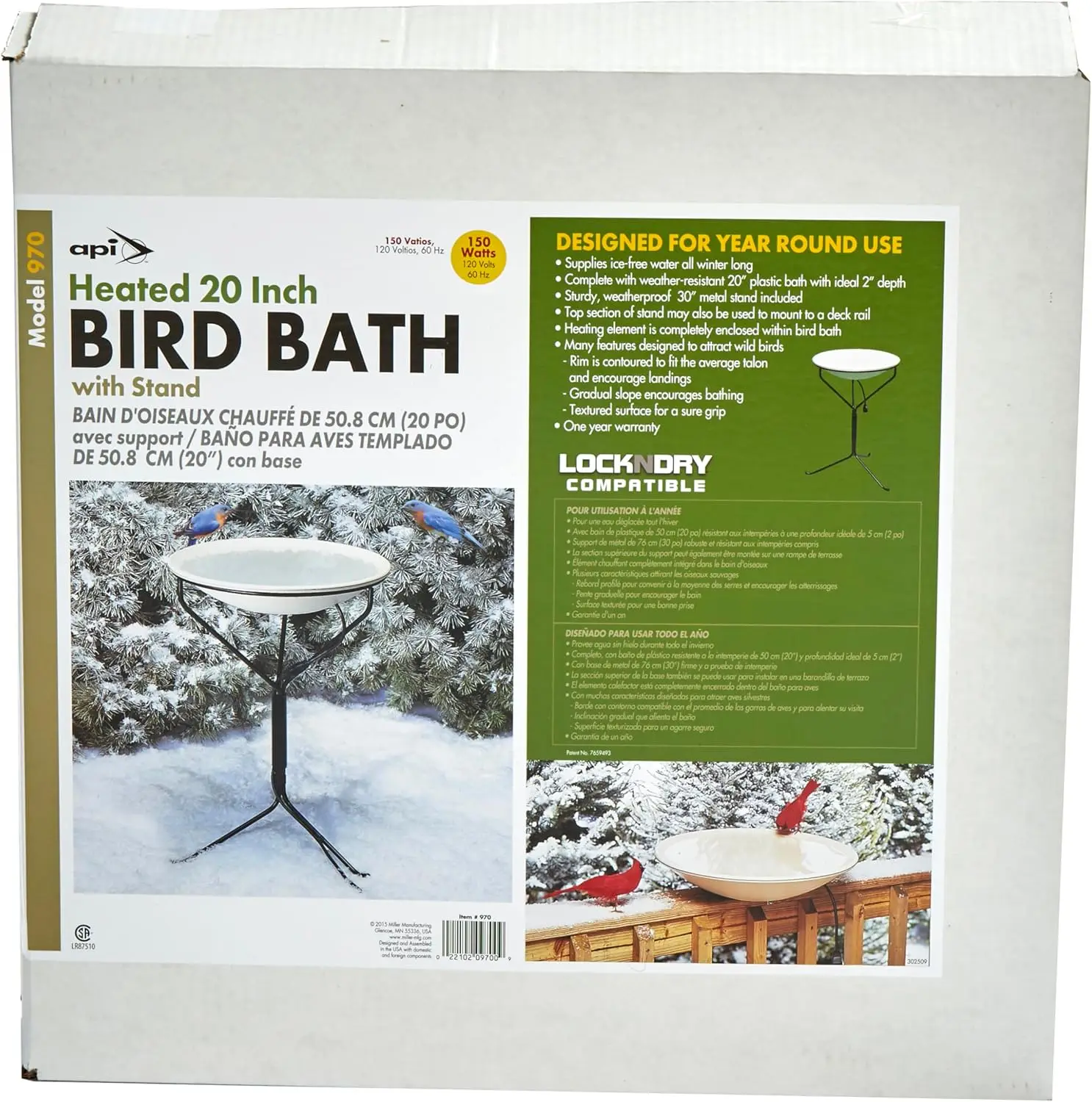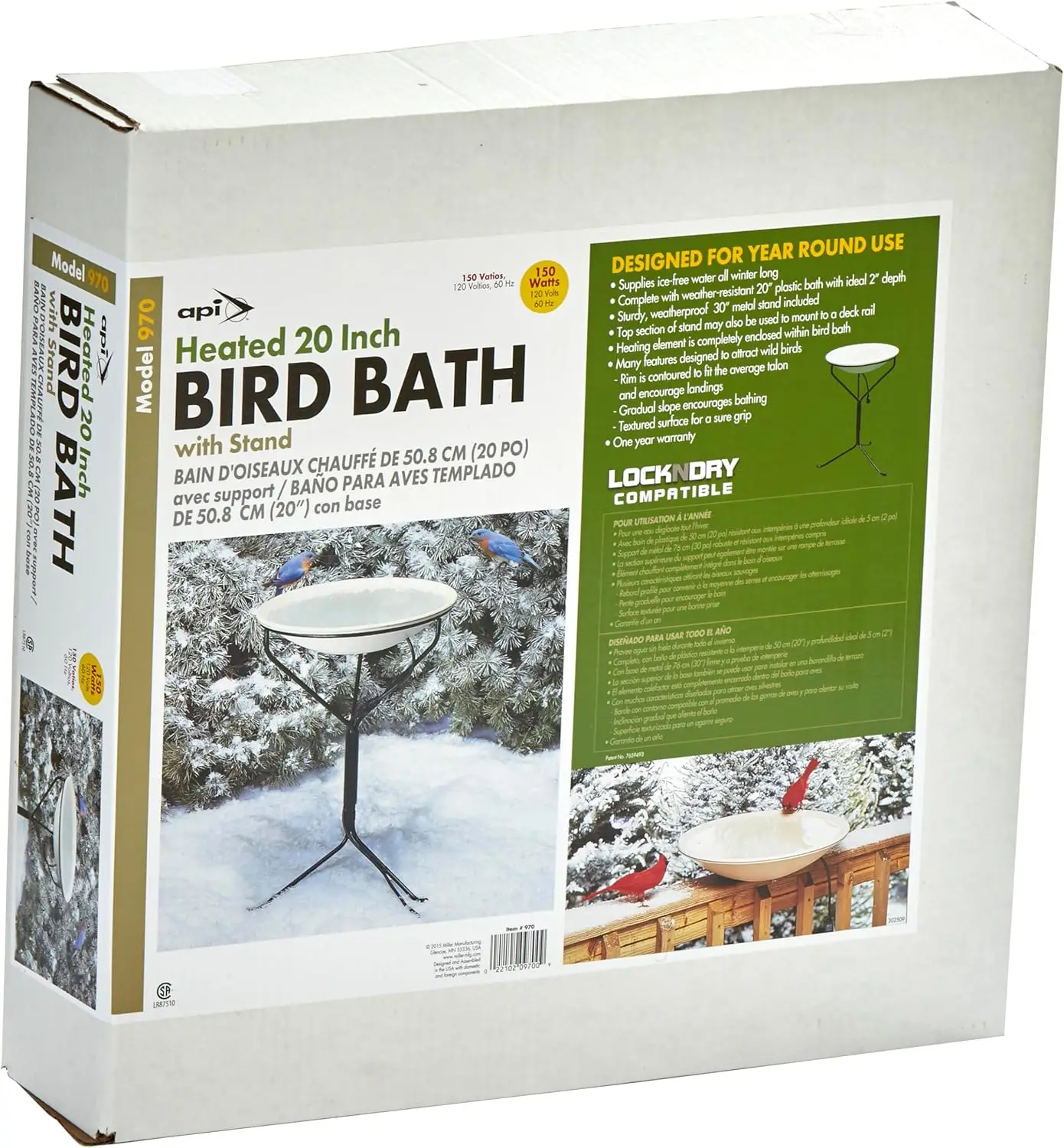 Heated Bird Bath, Heated Bird Bath with Stand or Deck Mount, Outdoor Bird Bath for Winter and All Seasons, 150 Watt